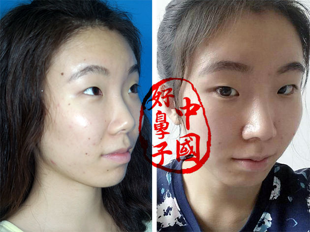 其次如果出现假体歪斜,假体隆鼻后鼻部歪斜是常见的并发症之一。其原因有的与本身条件有关,如鼻中隔歪曲、鼻小柱歪斜等,也有手术本身造成的,如分离的腔隙不够、假体雕塑不到位等。