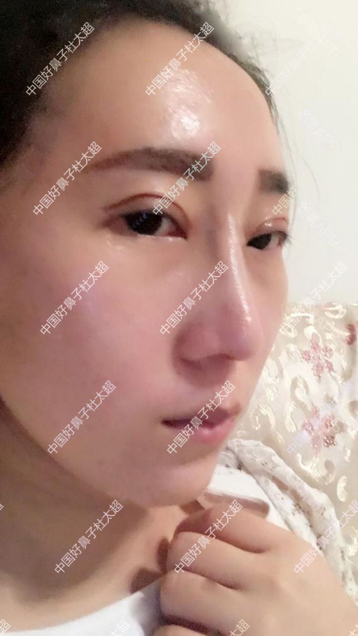 山根还是肿的,感觉下面的假体固定住了,但是山根的假体还是有点能活动,不禁想起,第一次做完鼻子,七天就长得死死的,本来是好事,但是假体歪了啊,好事变坏事