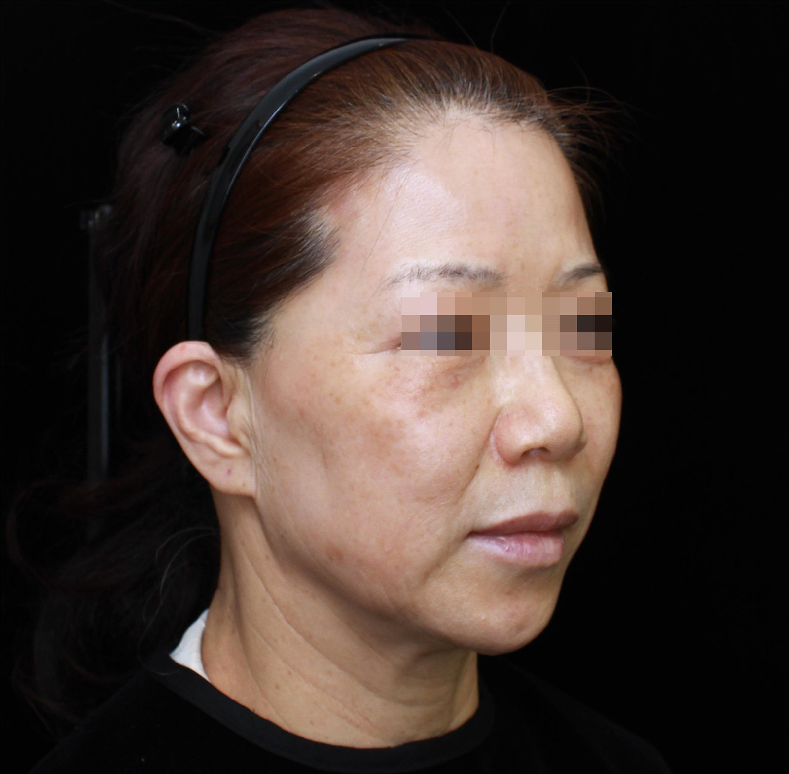 这是我的侧脸,同样的,皱纹还是很明显,尤其下颌缘位置还有很多细纹,面颊部因为衰老也变得凹陷、苹果肌位移也非常明显。