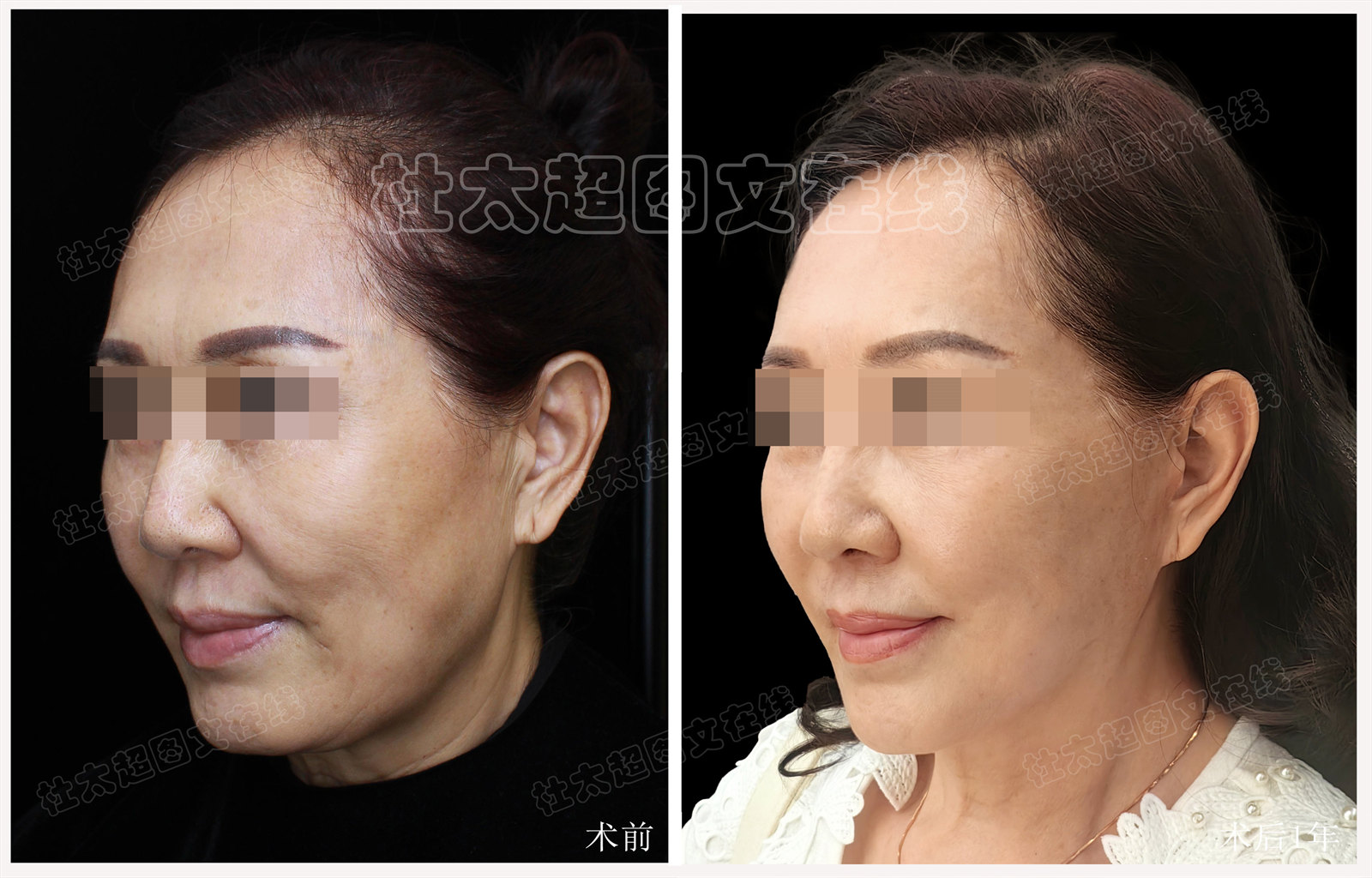 看我术后1年的模样,对比术前,万万没想到恢复得居然这么好,这么自然,完全看不出来手术痕迹,整体看起来年轻了10来岁的模样。朋友也说我现在看起来更知性、更优雅了。