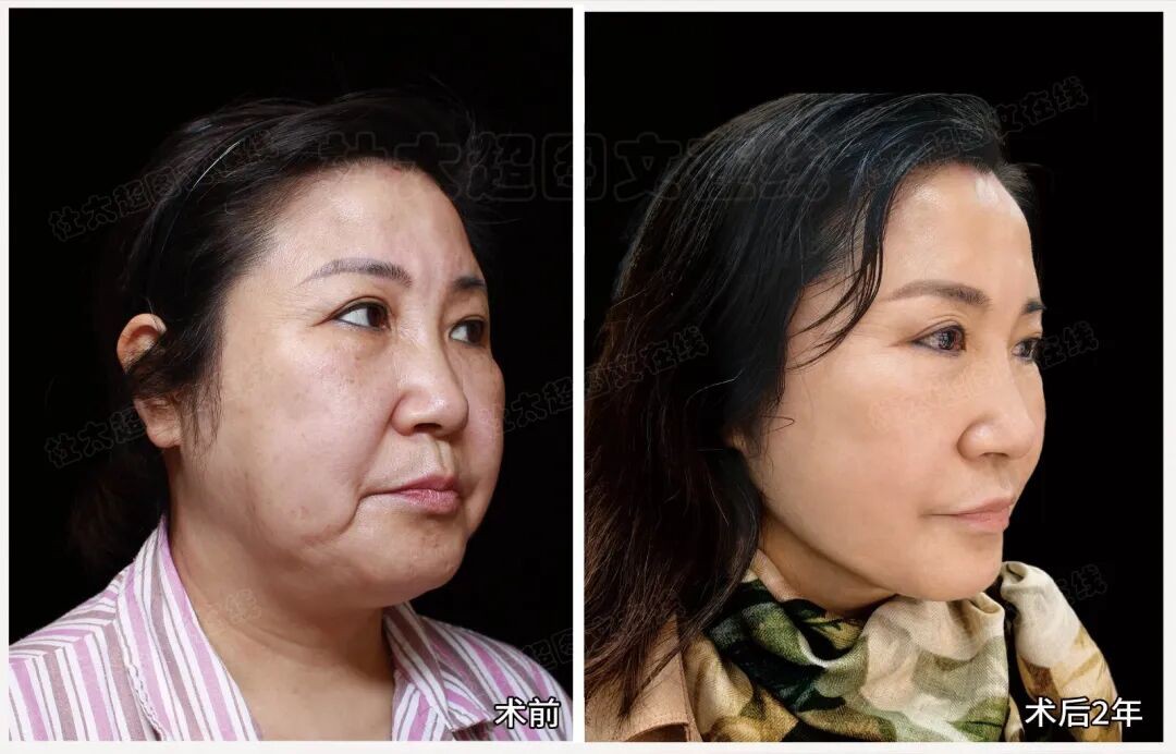 两年过去,没有松垂回来的迹象。这说明当初深层筋膜的固定是真的稳,不是术后肿胀带来的“假紧致”。