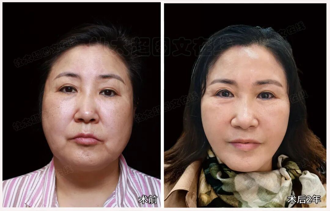 关键是2年了,法令纹没有回弹。这说明手术对深层软组织的固定是长效的,从根源上解决了下垂的问题。