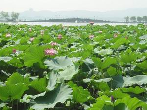 那夏日里层层叠叠的莲荷,在晨间的荷塘里,勾画出一片安宁,但轻轻的一阵脚步声过去之后,仿佛那里的沉默悄然惊醒。仿佛她们一直在等候这脚步声的到来,等待那一片片眸光如春雨般撒遍这里的每一片绿叶,撒满这若水盈盈的莲塘。那一只只粉红色的探出绿叶的宁波仙子,就是她们里最涌动的顽童,先人一步地探望着向她们走来的每一个闲散的人们。一阵风过去,将她们婀娜多姿的身影荡漾在碧波微澜的水面上。随波而逐的青蛙给这里注入了最生动的灵气。