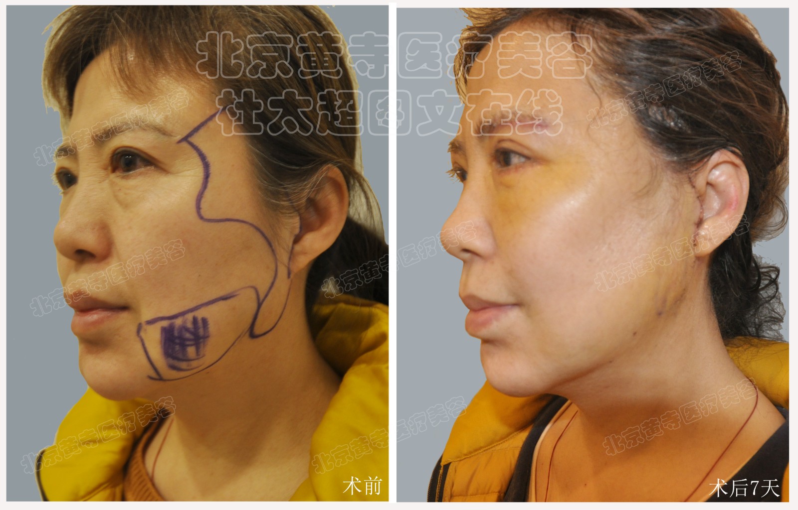求美者51岁,小切口中下面部提升术后7天对比