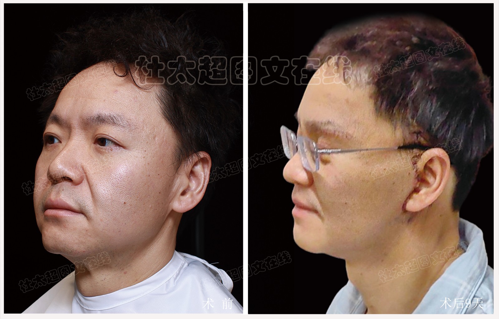 男性拉皮面部提升术后近期随访9天