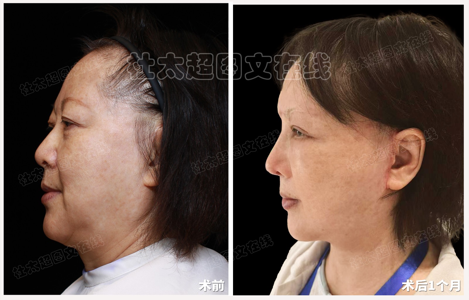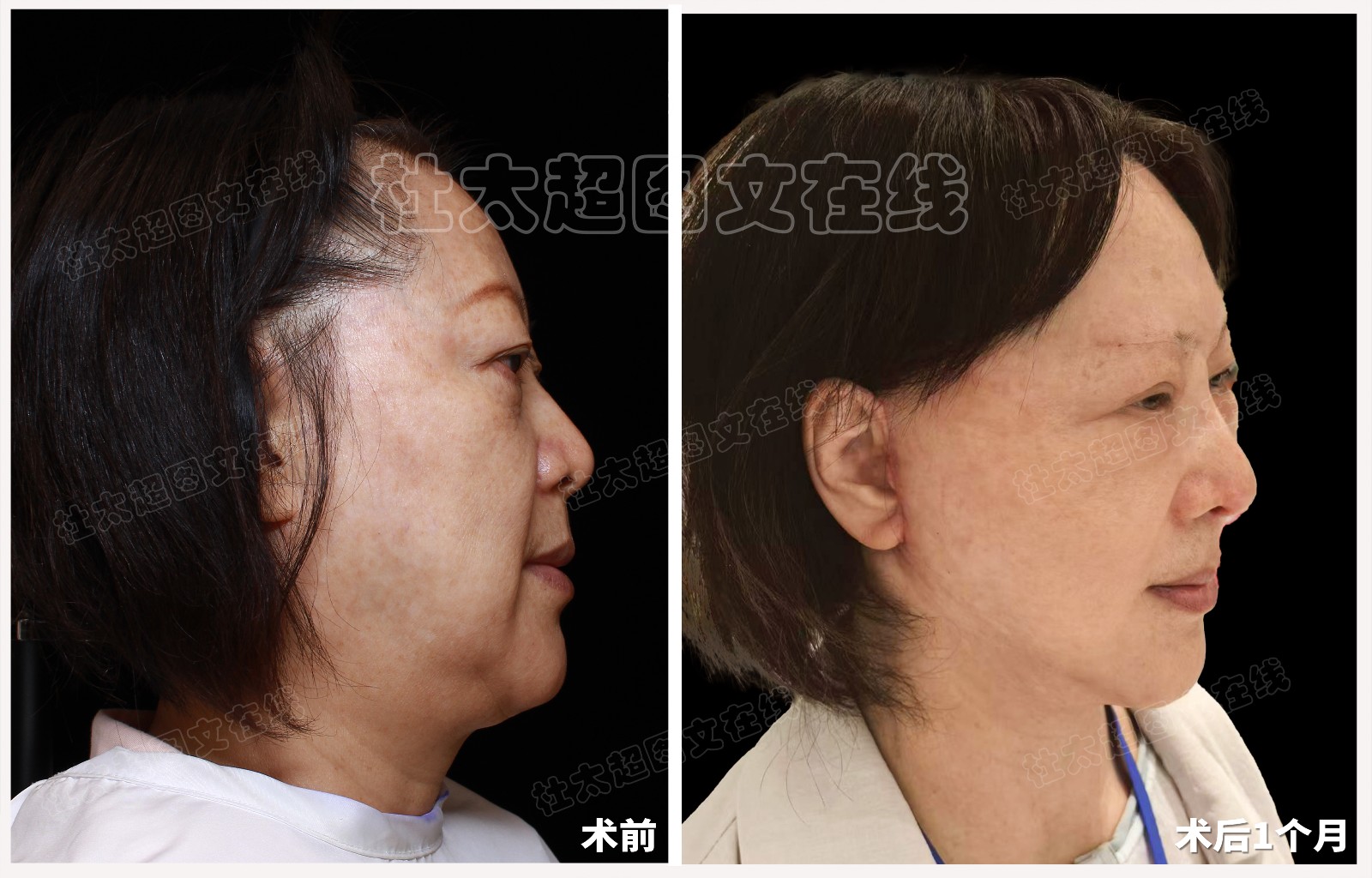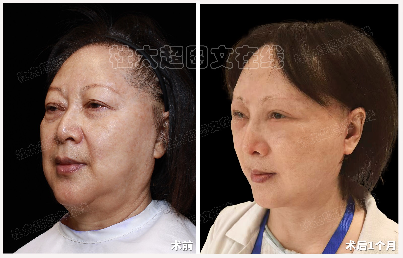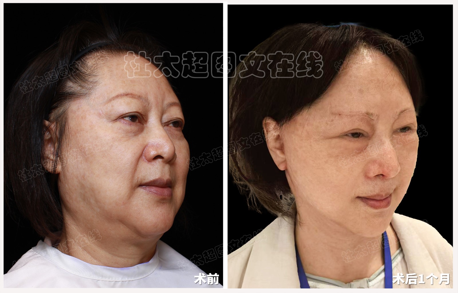 馒化脸老年人拉皮隆鼻面部提升术后近期随访1个月(不能用)