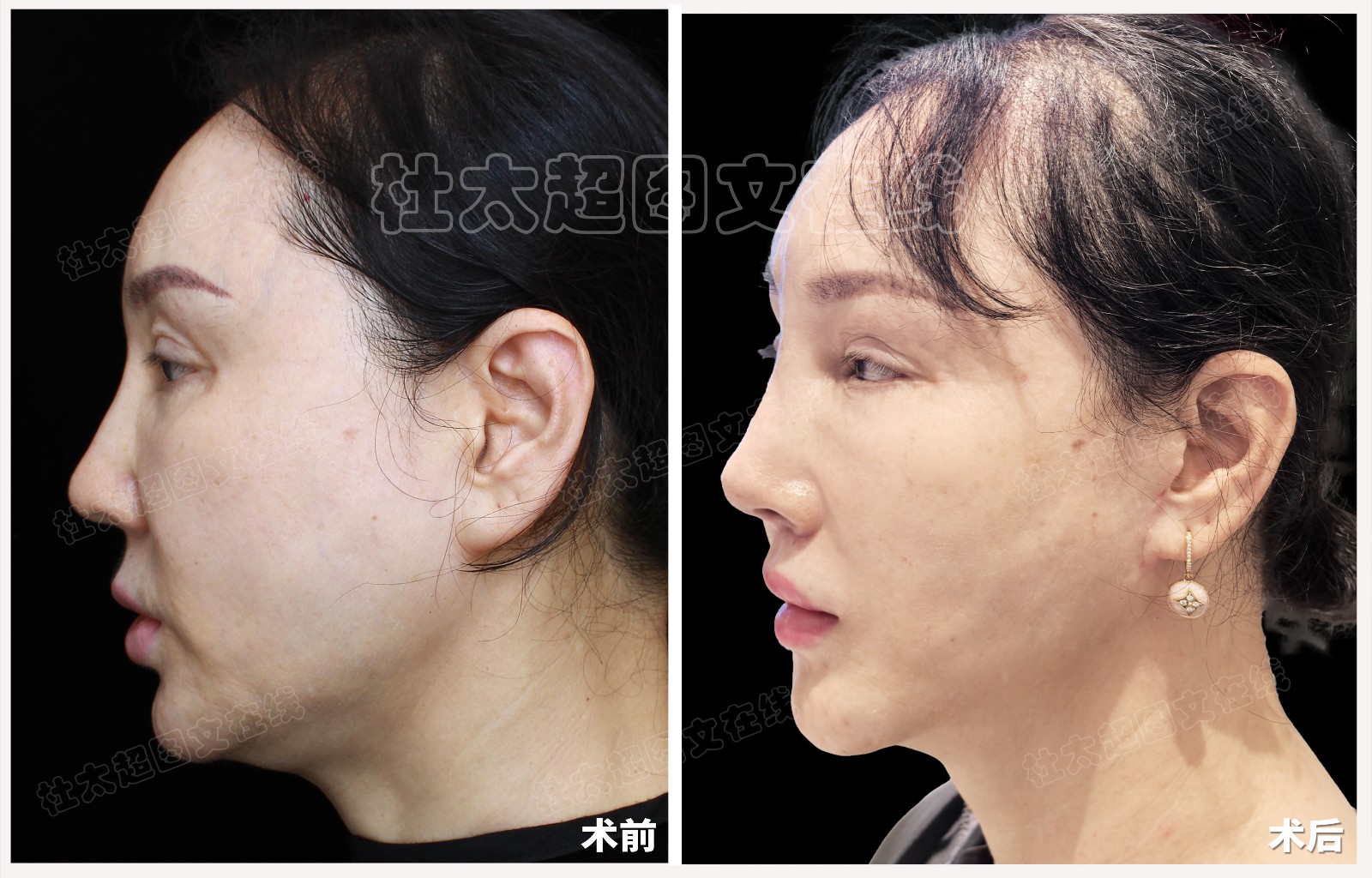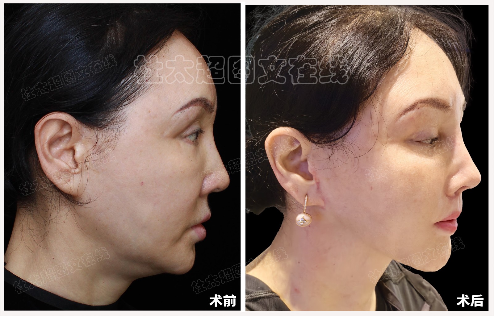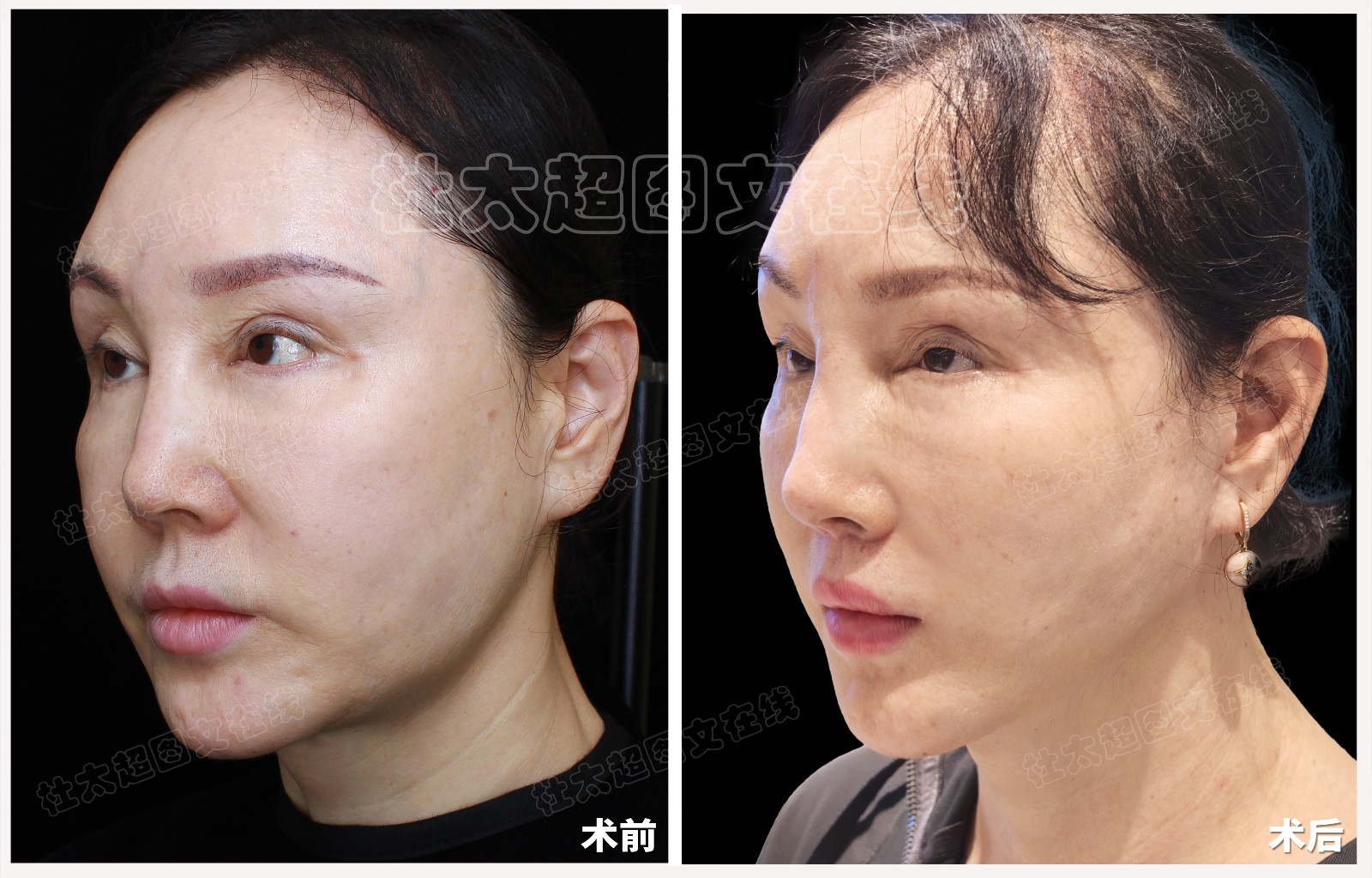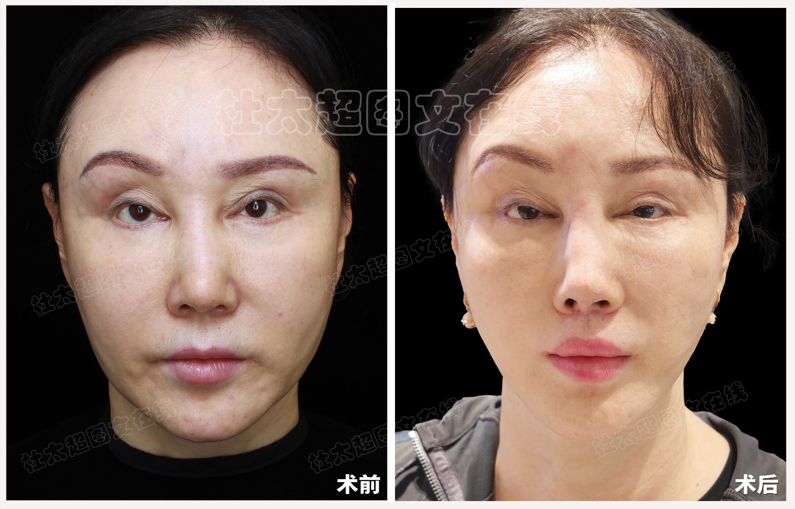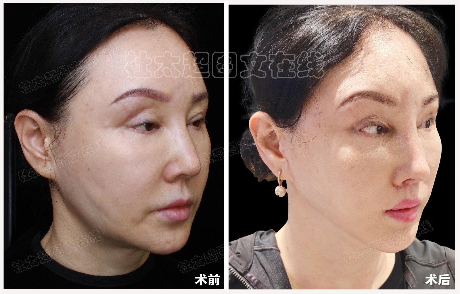中年人拉皮隆鼻修复面部提升术后近期随访