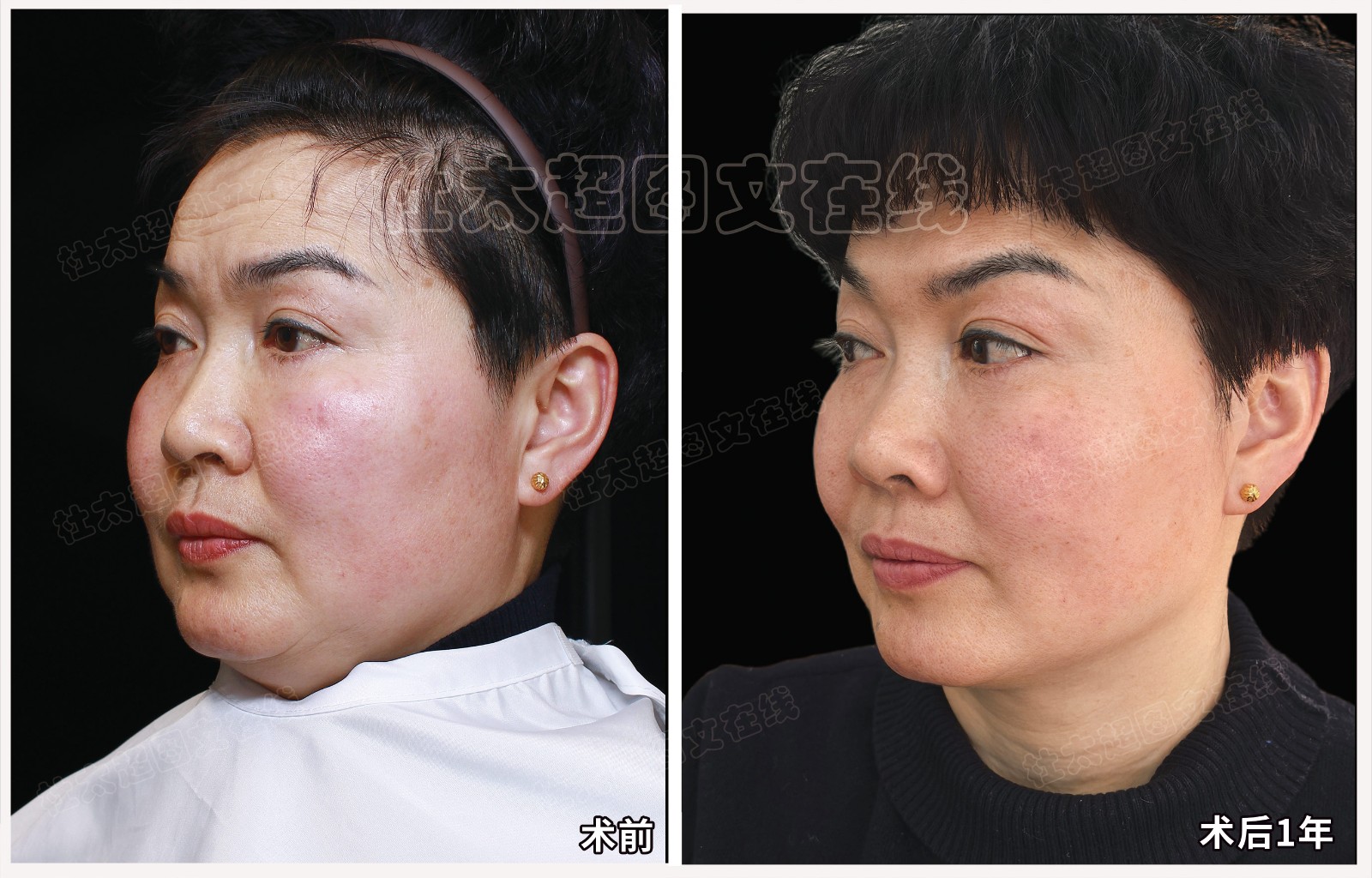 中年人馒化脸拉皮面部提升术后近期随访1年
