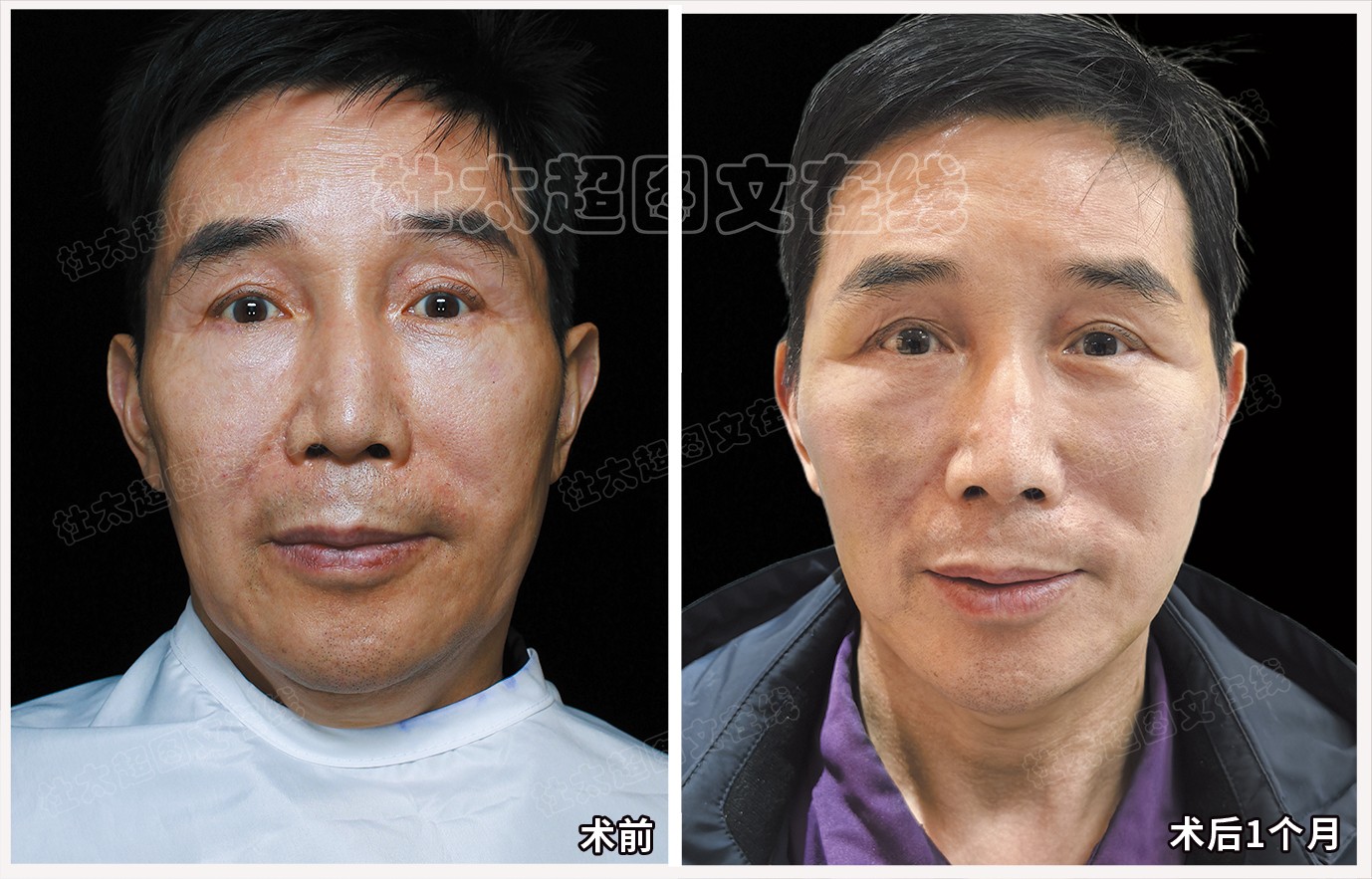 男性中年人拉皮面部提升术后近期随访1个月