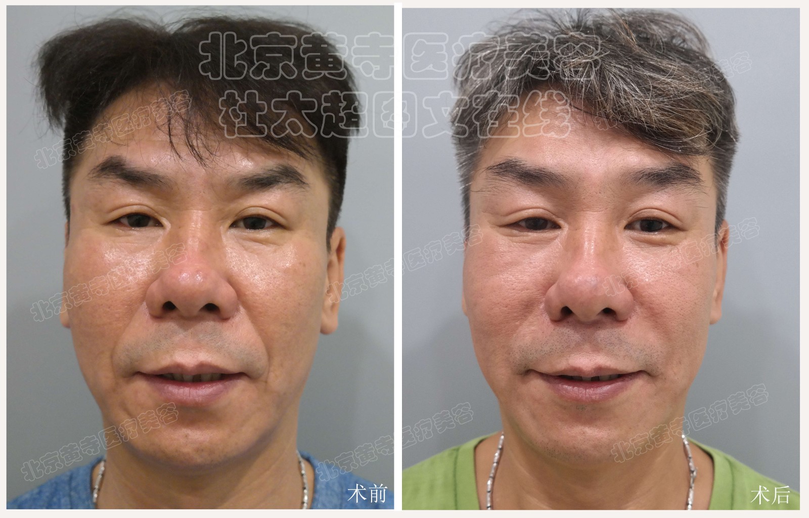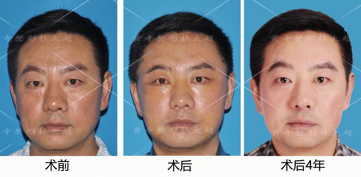 求美者48岁,男性拉皮,眼皮松弛提升,眼袋矫正,泪沟凹陷填充,中下面部提升术后7天和术后随访4年