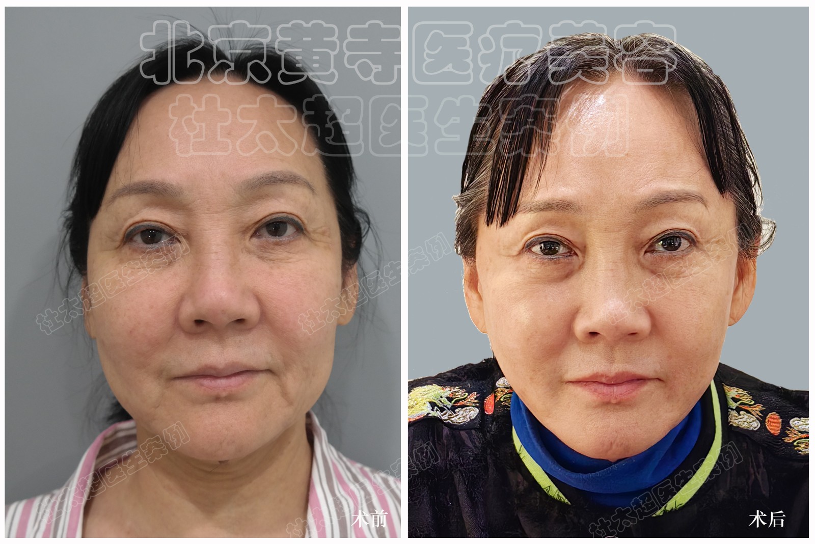 求美者48岁,小切口额部除皱,川字纹去除,中下面部提升,上睑松弛提升---经典案例