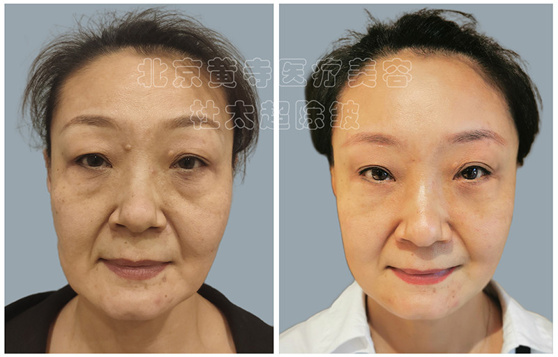 求美者52岁,小切口额部除皱,川字纹去除,中下面部提升,上睑松弛提升,眼袋去除,泪沟填充--经典案例