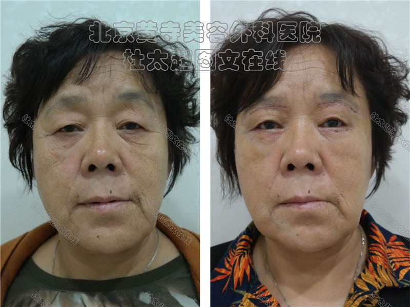 求美者65岁,经眉下切口眼皮提升,眼袋术后7天