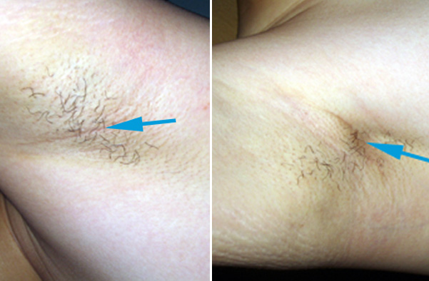 恢复6个月的腋部手术切口(左侧)和恢复3个月的腋部手术