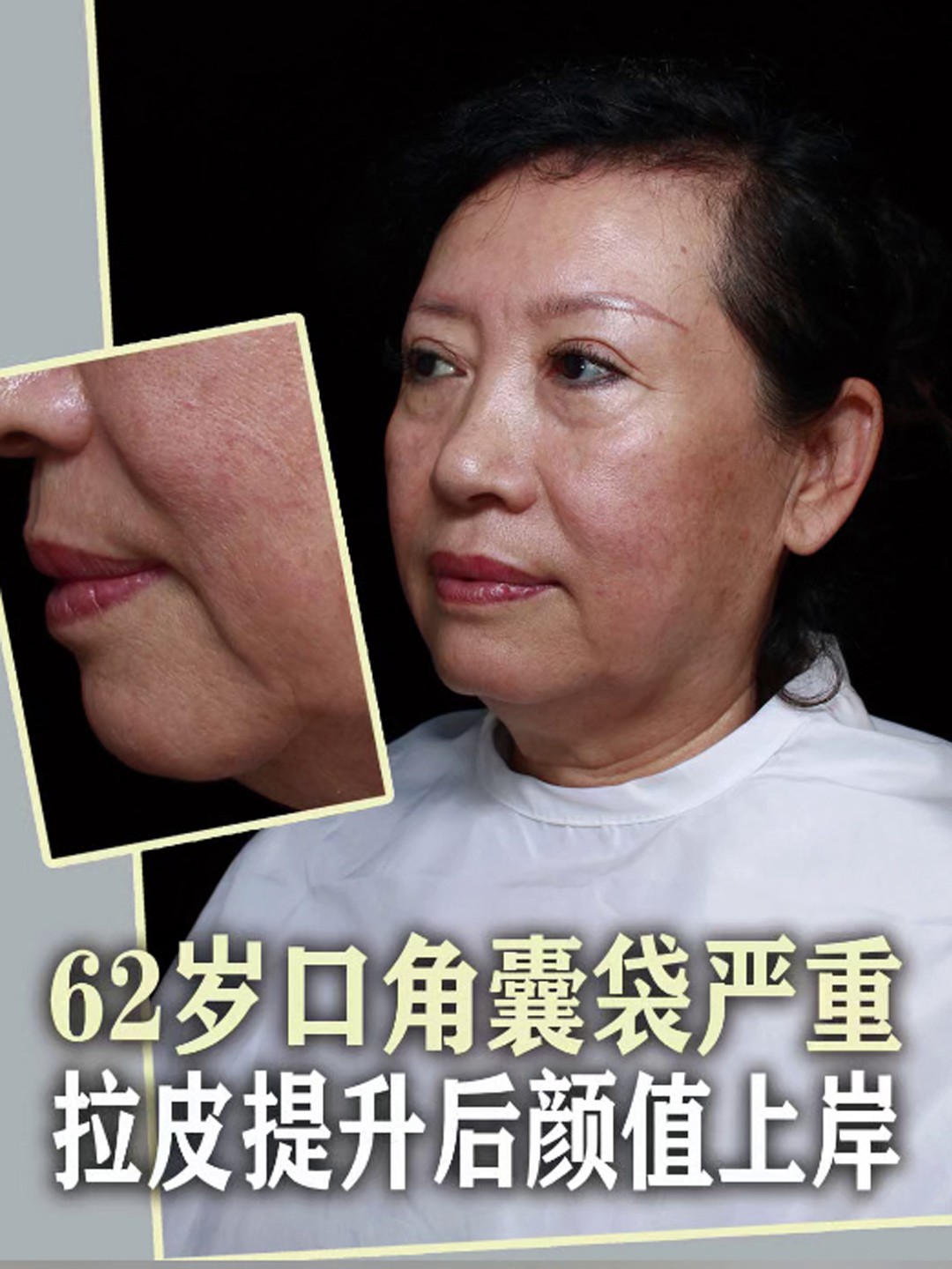 62岁口角囊袋严重,拉皮提升后颜值上岸