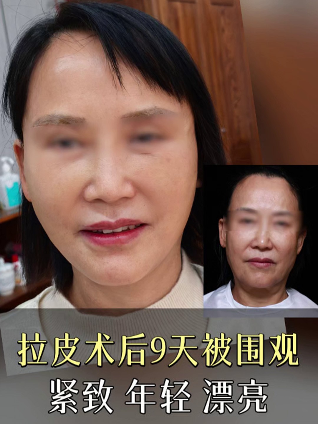 拉皮术后9天被围观,对比术前,紧致了~年轻了~漂亮了