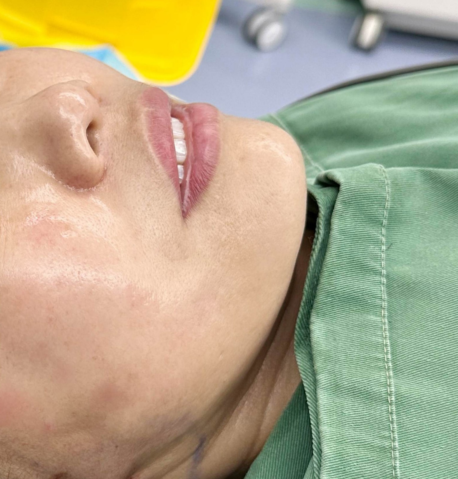 术后即刻,轮廓紧致、面颊饱满,照镜子自己观察,说非常好,脸感觉非常紧,看着比术前年轻好几岁~#拉皮手术#
