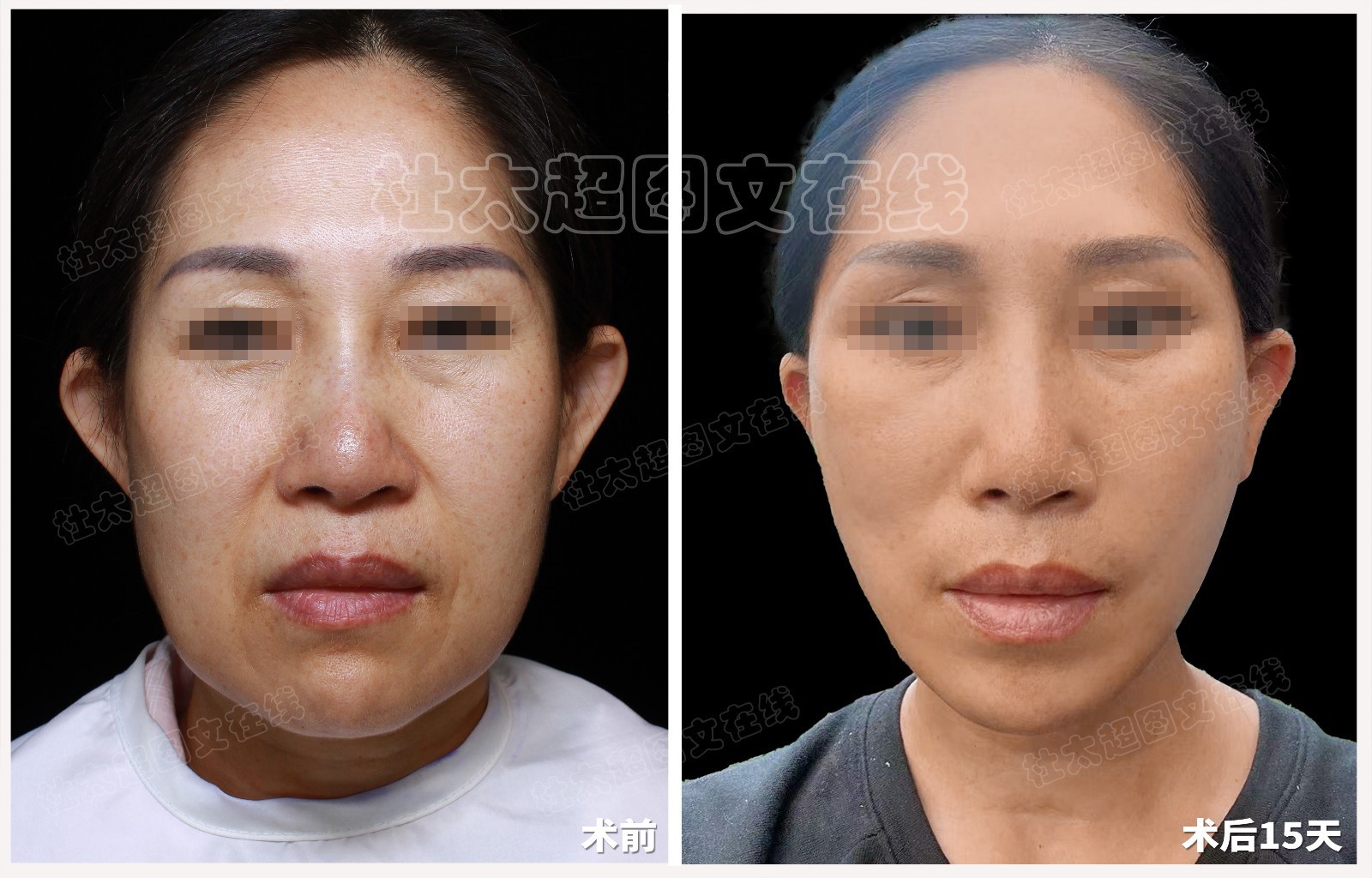 下图是我术后15天的照片对比,非常紧,皱纹都不见了,松垮的脸都提拉上去了,看到这个变化,别提我有多激动了,我朋友真是独具慧眼,帮我了我大忙,给我当初徘徊的心重重一棒,才让我下定了决心。