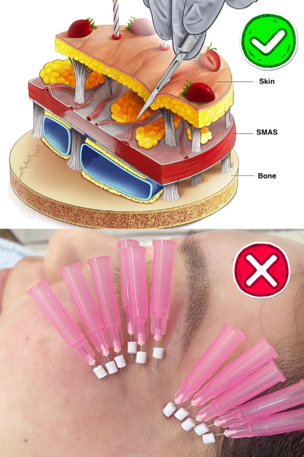 而线雕!!通过简单穿刺完成,主要作用于浅层,改善细纹、轻微松弛还行,但想靠它提拉深层筋膜?是不可能实现的!