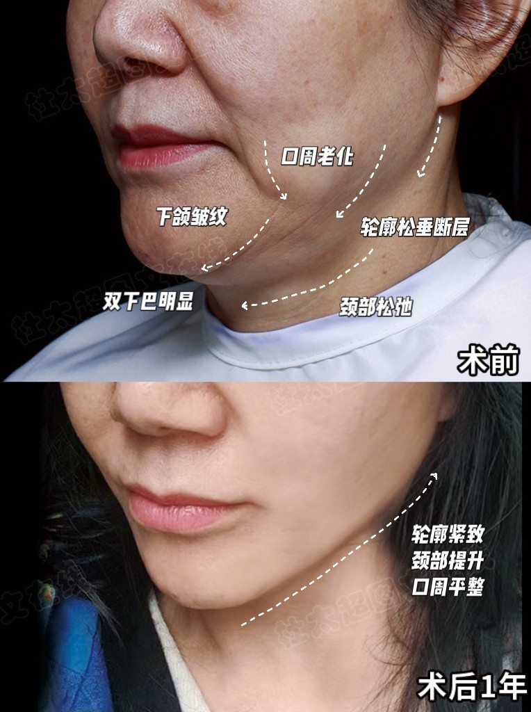 下图就是我的真实作品,求美者术后1年的真实对比,下面颈部的变化真的让她眼前一亮,她说:身边的亲朋好友都说她变年轻了!!#抗衰##面部年轻化#