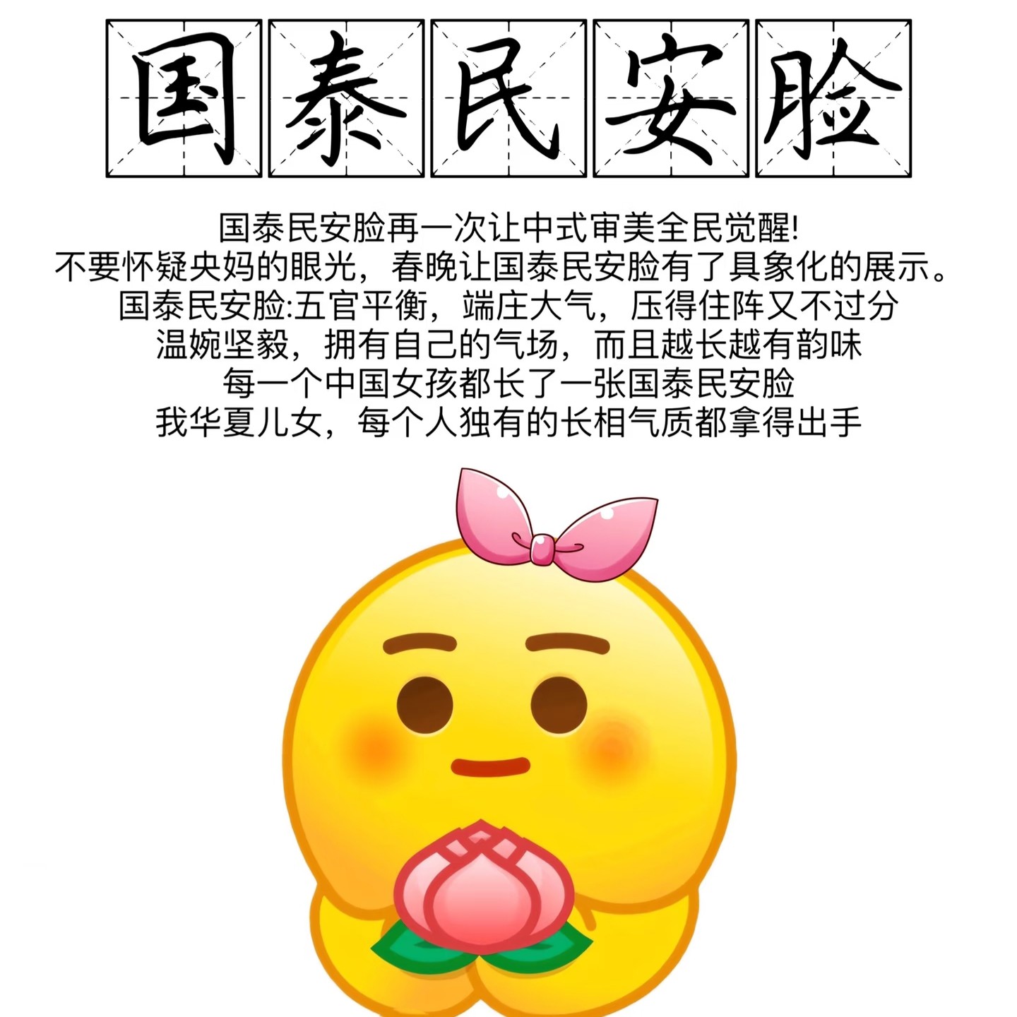 主流的审美,从临床求美者的诉求来看,现在还是以瓜子脸、小V脸的审美为主,但有一个趋势是,有一部分人更加喜欢圆润饱满的脸型,具有自己独特的韵味和气场 ,她们称这种脸型叫做“国泰民安脸”。