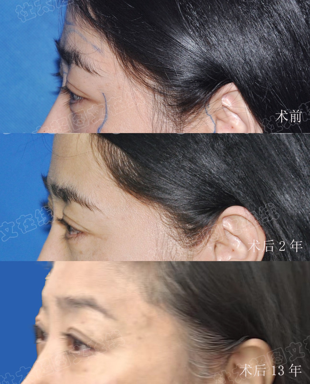 3、还有一种是拉皮术后导致的局部斑秃,这种就是一个异常的情况。但是大家放心,我们的手术是不去除头皮的,保留头皮的正常血运,不会产生脱发。