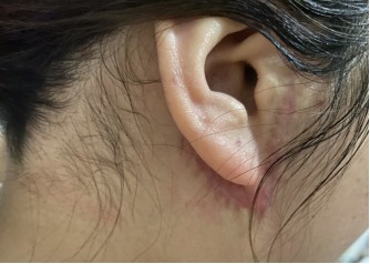 由于假拉皮是单纯提升“皮肤层”,去皮量大,影响切口周围血运,即使做了减张缝合,切口也极易形成术后瘢痕。