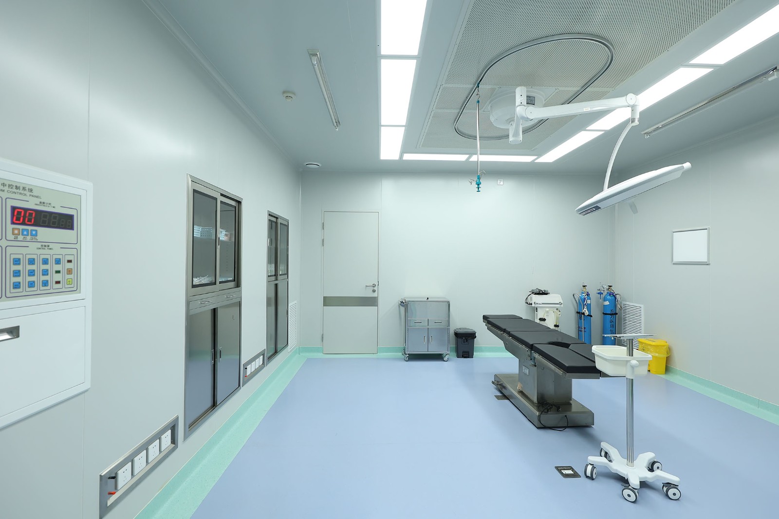 2、千层流手术室,高效过滤净化手术室空气,能控制气流的流通方向,使气流从洁净度高的手术区域流向洁净度低的区域,并带走和排出气流中的尘埃颗粒和细菌,使手术室保持高度无菌的洁净状态。