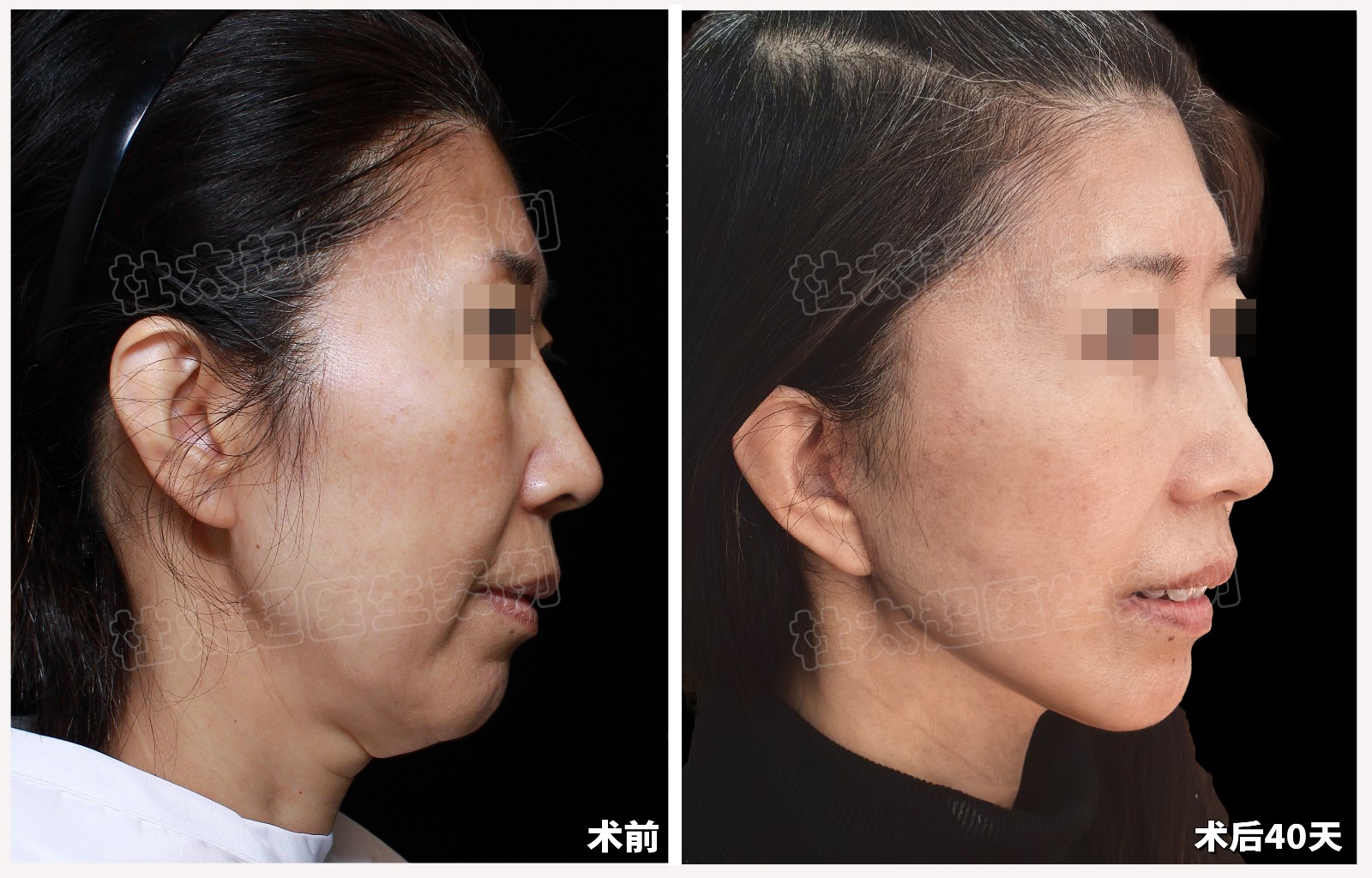 术后40天,耳前切口藏发际线,面部整体紧致,皮肤光泽自然,颈线流畅,下颌缘清晰,老化状态显著改善。