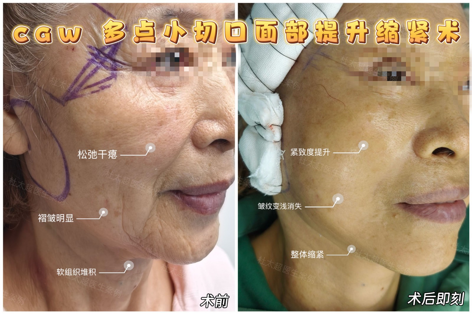 发表时间:2025-07-16 14:34:07想知道65+岁面部松弛、皱纹、软组织堆积等衰老问题,如何高效改善?来看 caw多点小切口面部提升缩紧术术前术后对比案例:
