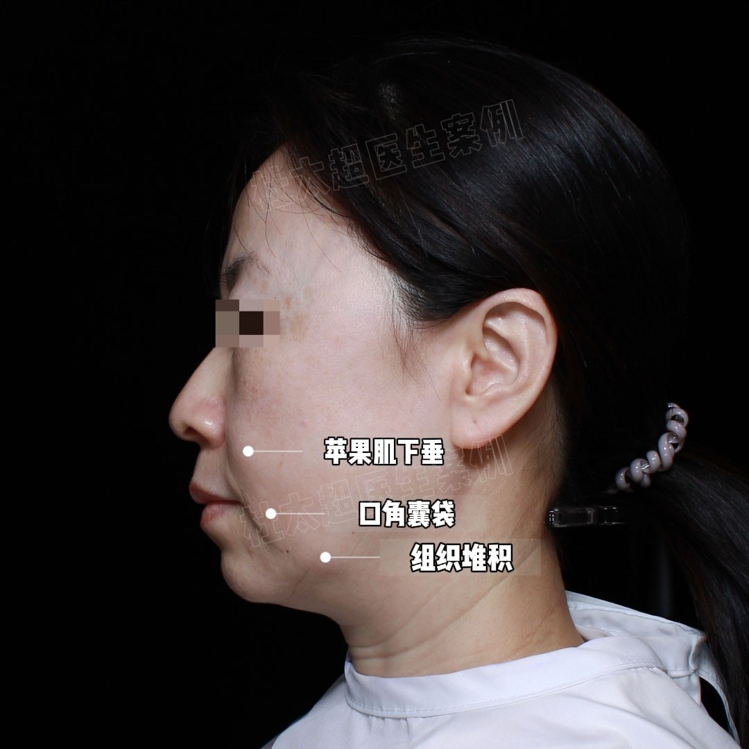 就拿这位求美者为例,她术前面部衰老问题明显,属于重度松弛下垂#衰老# (衰老问题详见图1-3)。