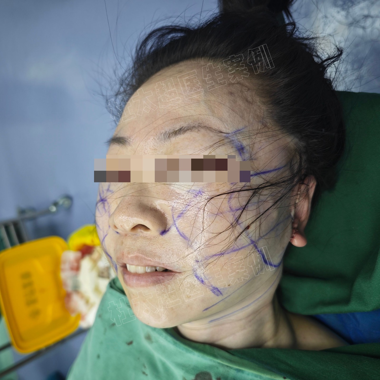 帮她私人订制改善方案,在颞部发际线内沿着耳屏到耳垂连接耳后做连续性大切口,剥离范围直达松垂的鼻翼部位及口角处,大范围剥离,全面提升松弛下垂的中下面颈部组织,实现多层次整体提升、全面年轻化的目的。