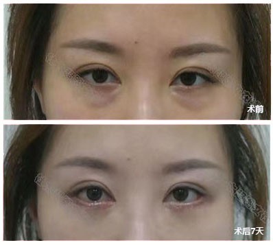图为术后7天效果,不用担心痕迹,不用担心留疤,7-10天的恢复期,恢复后别人很难发现你做过手术~只是觉得你有精气神了~#去眼袋#