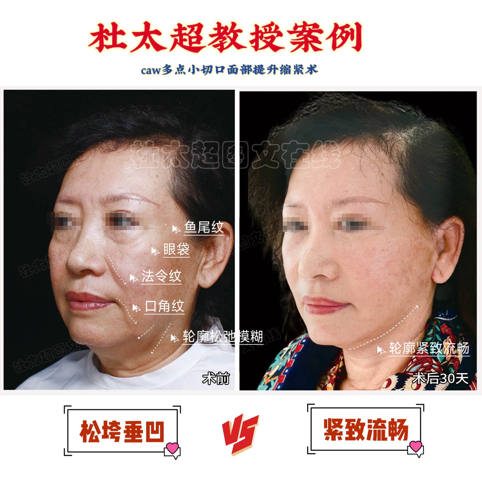 下图是她术后一个月的效果,看面部情况,轮廓紧致了,皱纹减轻了,面部平整度增加了,整个人年轻了又没有明显的手术痕迹,效果也非常自然,她感觉效果很好,很满意!#拉皮手术##杜太超医生案例#