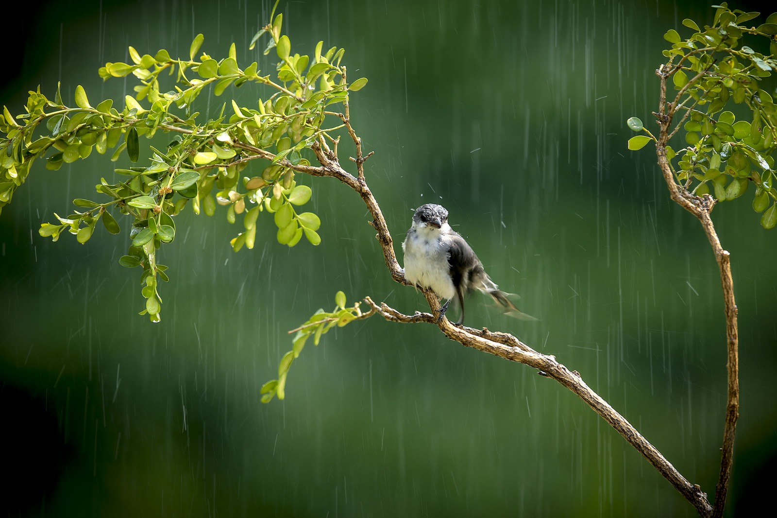 在雨中,你无助地栖息在风雨飘摇的枝头,眼睛专著地凝视着远方,期盼着远方的乌云散尽,期盼着一把巨伞降临,让无情的风雨化为过眼云烟,彩虹再现。