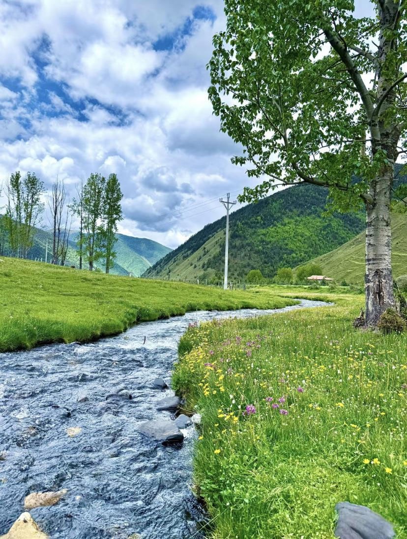 一个人独自漫步在绿草如茵的岸边,欢快流动的溪水载着我们当时的心情一起流向远方,将我们的欢乐和着溪流,在悦耳的溪流声里参进了别样的心情和故事,那时,我们看到了自己心情的流动,仿佛自己就如同溪水一般自在。