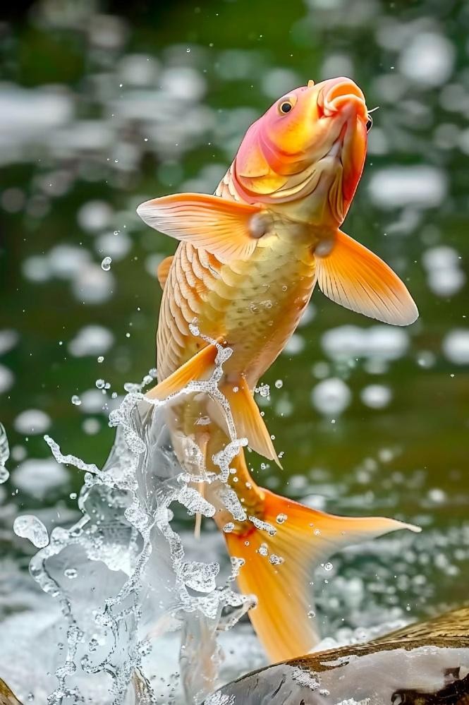 肥硕的鱼儿经不住风里气息的诱惑,跃然于水面来感受风中的气息,将平静的水面激荡出一层层波浪。